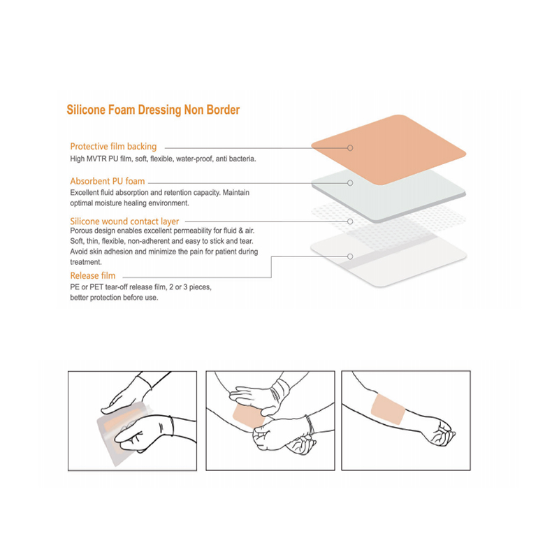 Reunukseton silikonivaahtosidos on itsekiinnittyvä sidos, joka koostuu suojakalvotaustasta, imukykyisestä PU-vaahdosta, silikonihaavojen kosketuskerroksesta ja irrokekalvosta. Sitä käytetään pääasiassa kroonisissa ja akuuteissa haavoissa, joissa on kohtalaista tai runsaasti erittämistä, ja sitä käytetään myös painehaavojen ehkäisyyn ja hoitoon.