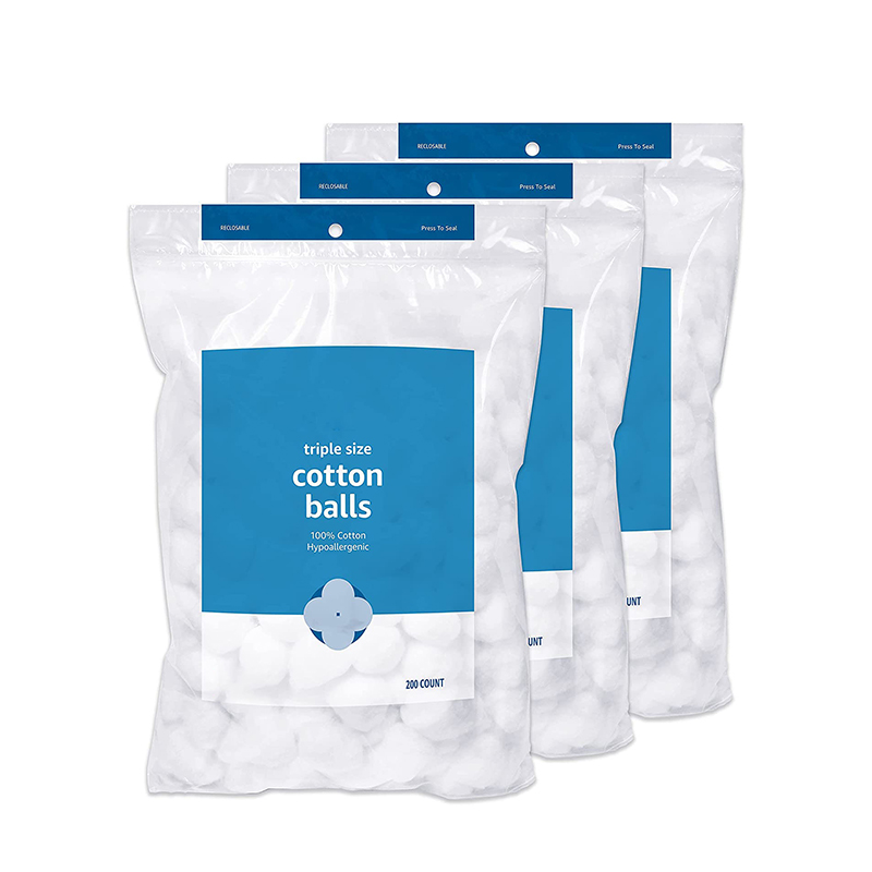 Hellävaraiset ja pehmeät hypoallergeeniset puuvillapallot, jotka on valmistettu puhtaasta puuvillasta.