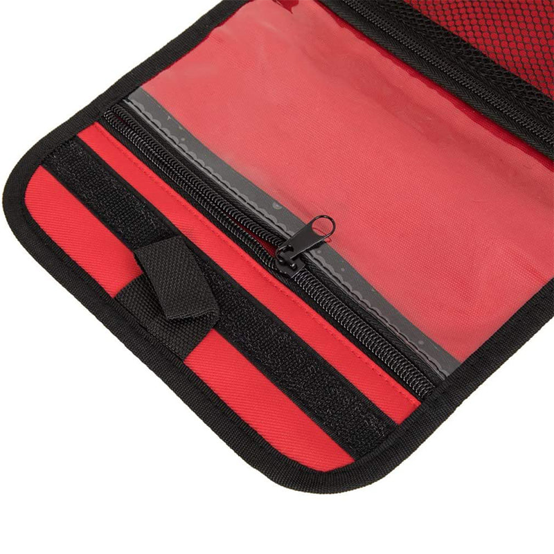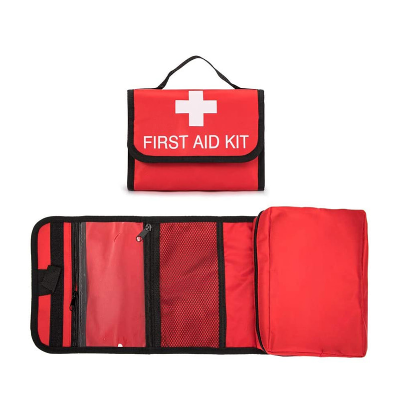 Monipuolisessa ensiapulaukussa on verkkotaskut sekä taitettava osa, joka mahdollistaa runsaasti säilytystilaa.