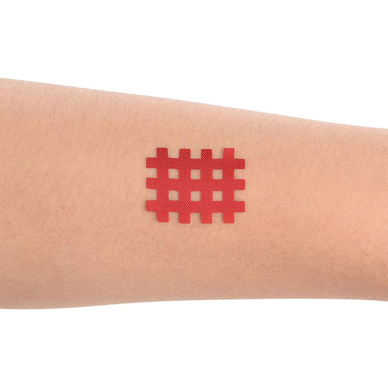 Ristiteippi on valmistettu silkkikankaasta, pinnoitettu lääketieteellisellä akryyliliimalla, lävistämällä ja