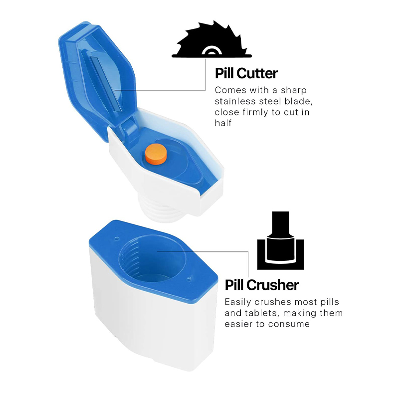 Jos haluat leikata pieniä pillereitä 1/2, 1/4 tai 1/8 alkuperäisestä koosta, suosittelemme lisäämään "V-muotoisen pillerileikkurin" päivittäistä käyttöä varten.