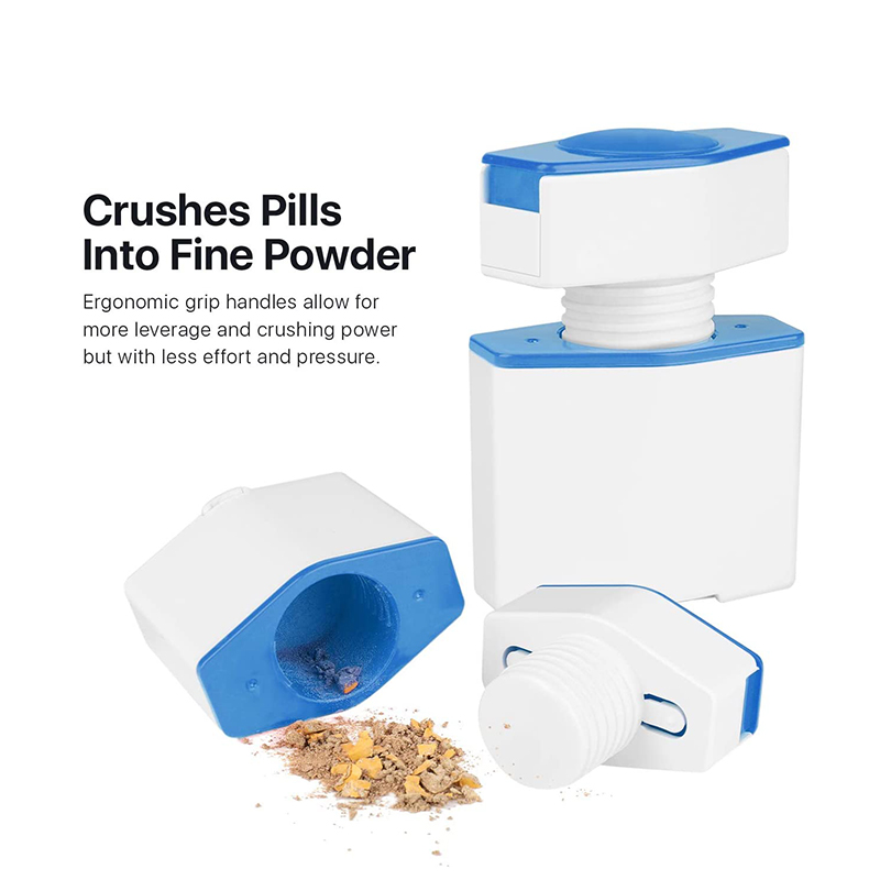 Se murskaa pillerit hienoksi jauheeksi, käyttää ruostumattomasta teräksestä valmistettua terää pillerien halkaisuun ja varastoi leikatut ja leikkaamattomat kapselit etukäteen.