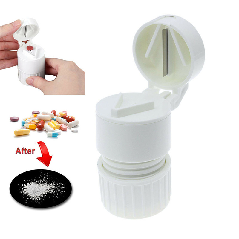 Pillerileikkuri ja -murskain on kolme yhdessä -laite, joka leikkaa, murskaa ja säästää pillereitä turvallisesti.