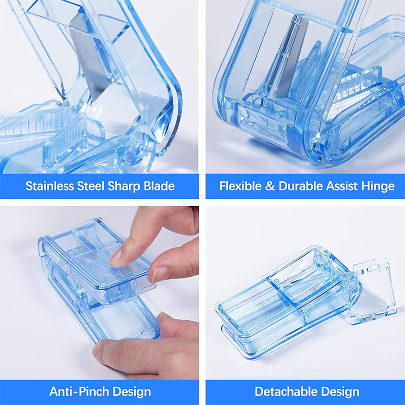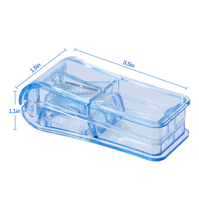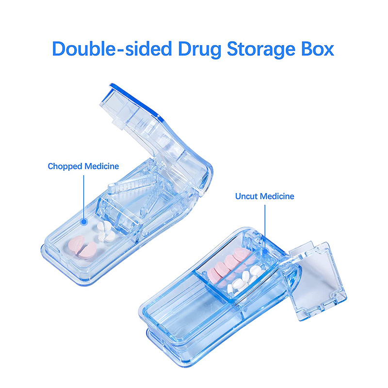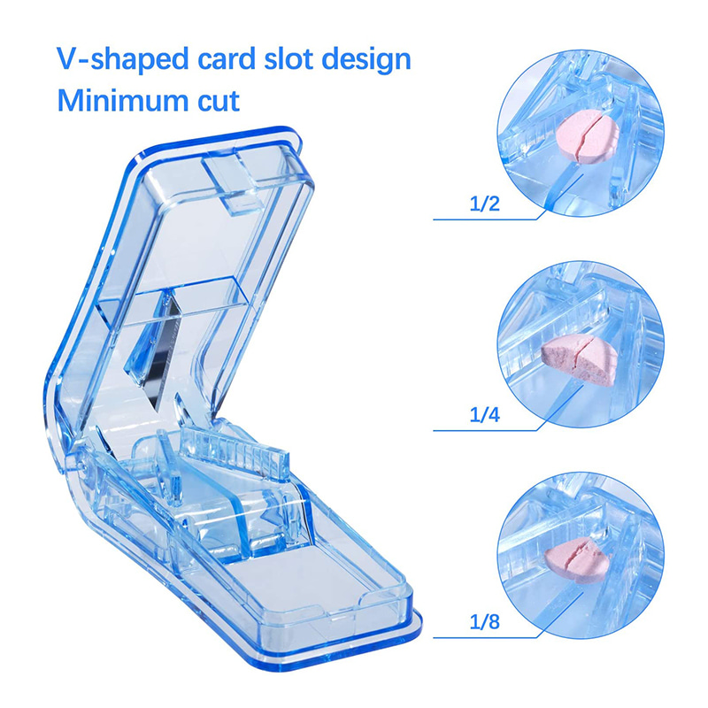 Pilleleikkuri on valmistettu elintarvike-PP-materiaalista, turvallinen lääketieteelliseen käyttöön, ympäristöystävällisillä, terveellisillä ja hajuttomilla ominaisuuksilla, vaaraton ja kestävä.
