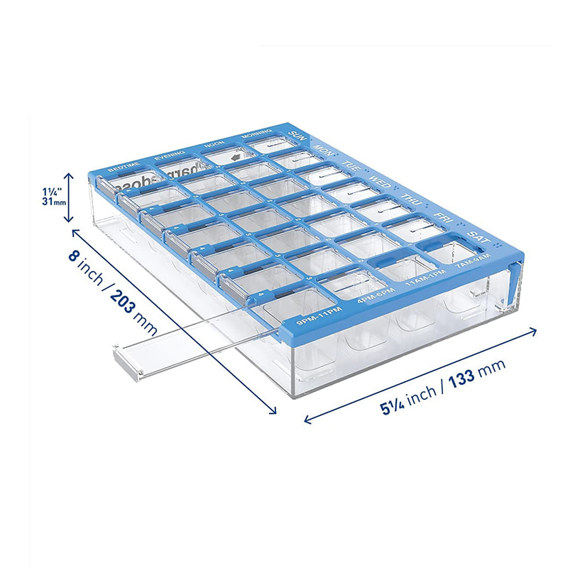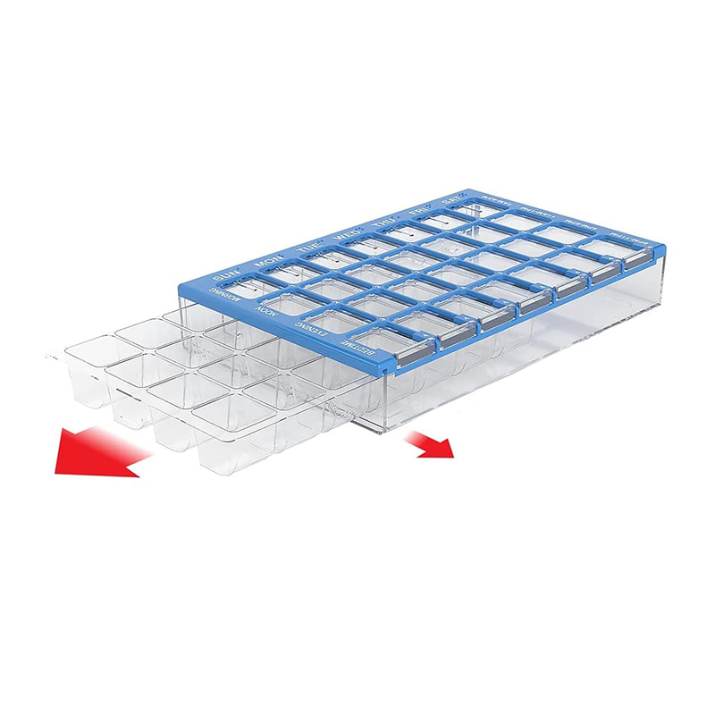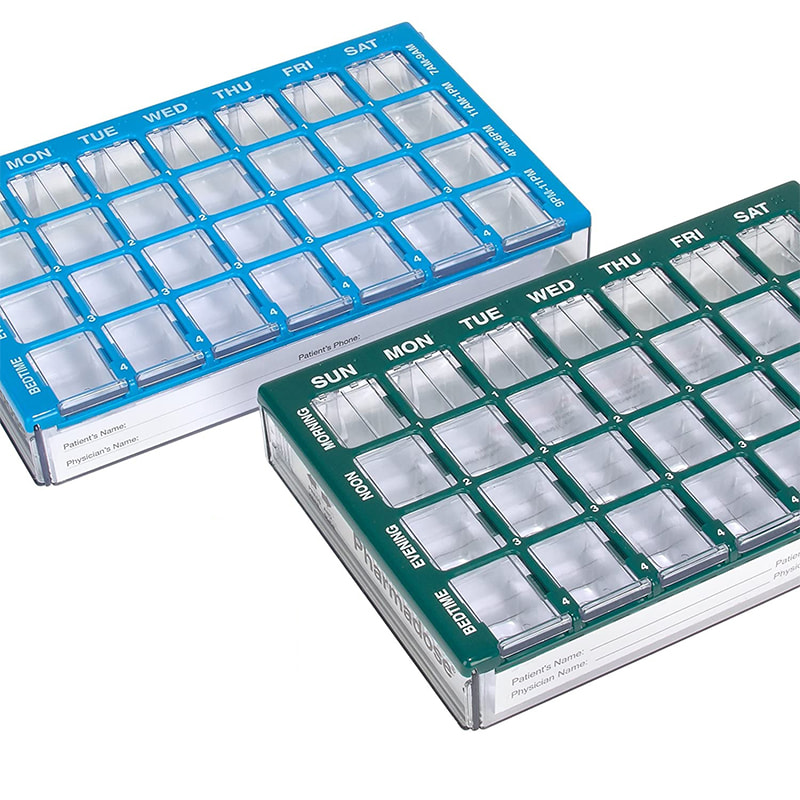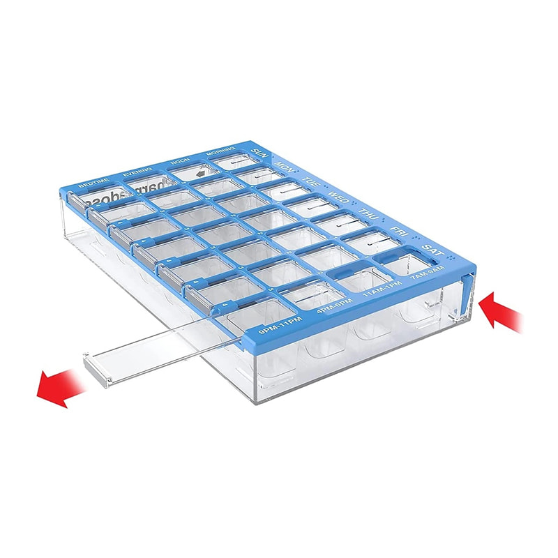 HELPPO KÄYTTÖ: Keskikokoinen yläkansi ja päivittäiset liukuvat kannet tekevät suunnittelijasta helppo avata ja lääkkeet noutaa