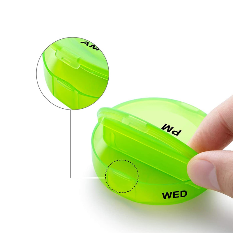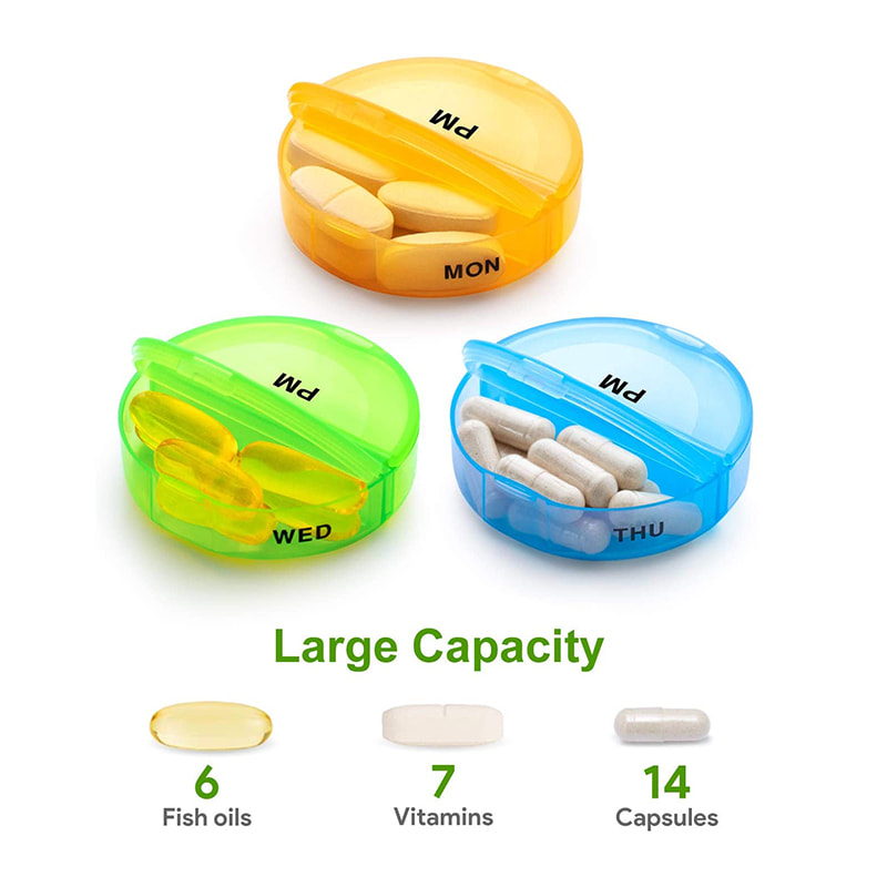 7 päivän järjestäjä on valmistettu elintarvikelaatuisesta PP-muovista ja turvallinen lääketieteelliseen käyttöön.