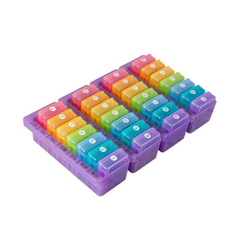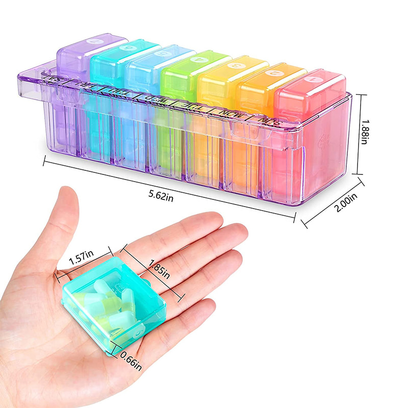 7 päivän pillerijärjestäjä on valmistettu AS-materiaalista, naarmuuntumaton ja puristuva.