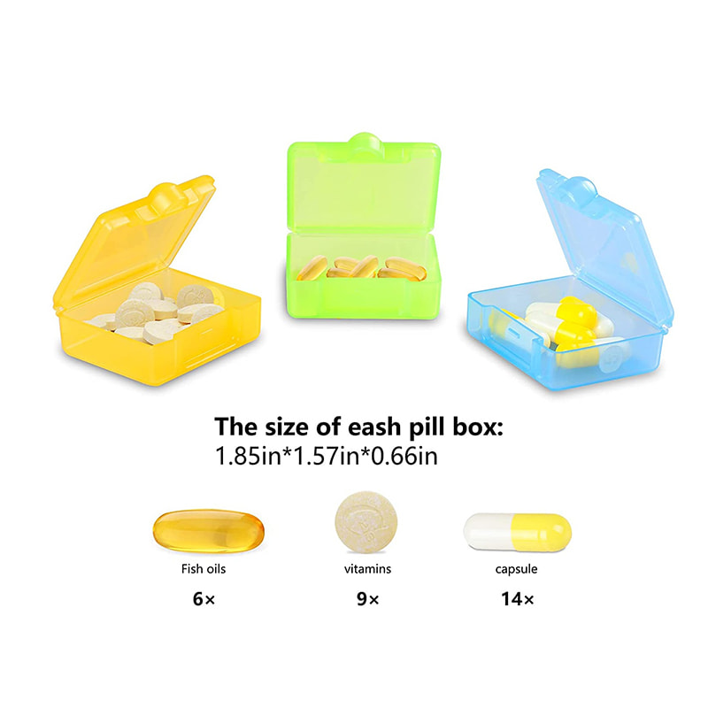 Viikoittainen pillerijärjestäjämme on kompakti, mutta siinä on tarpeeksi kapasiteettia säilyttää 6 kalaöljyä tai 9 suurta vitamiinia tai 15 kapselia päivittäiseen käyttöön.