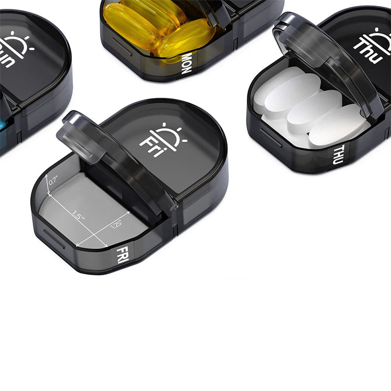 Tämä henkilökohtainen pillereiden järjestäjä on valmistettu BPA-vapaasta elintarvikemuovista.