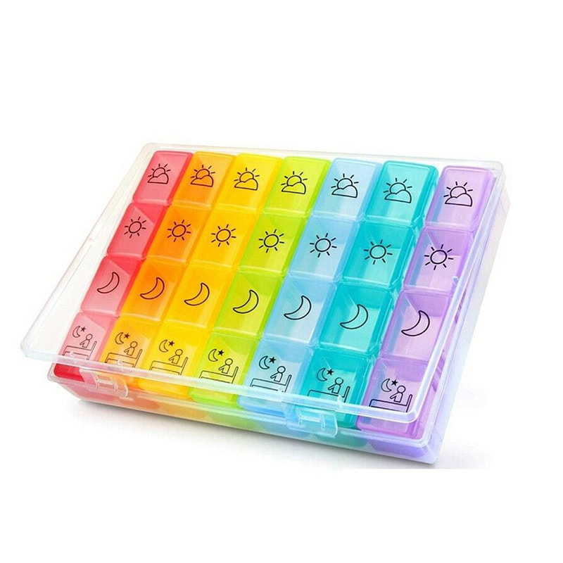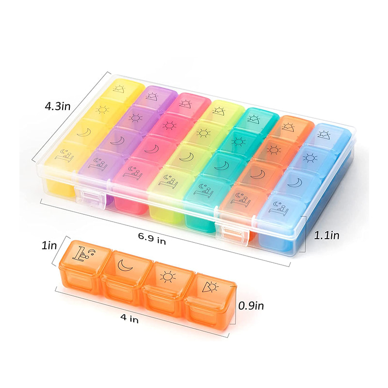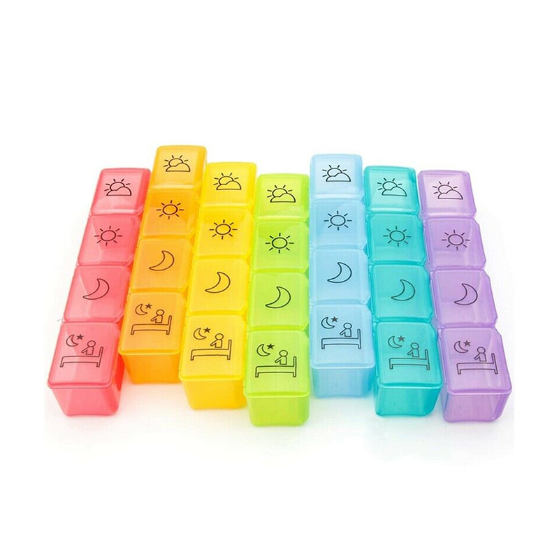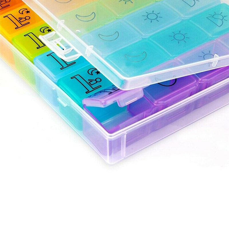 Kaksinkertainen laatikko estää pillereiden roiskumisen ja helppo kuljettaa mukana työmatkoilla, matkoilla ja retkillä.