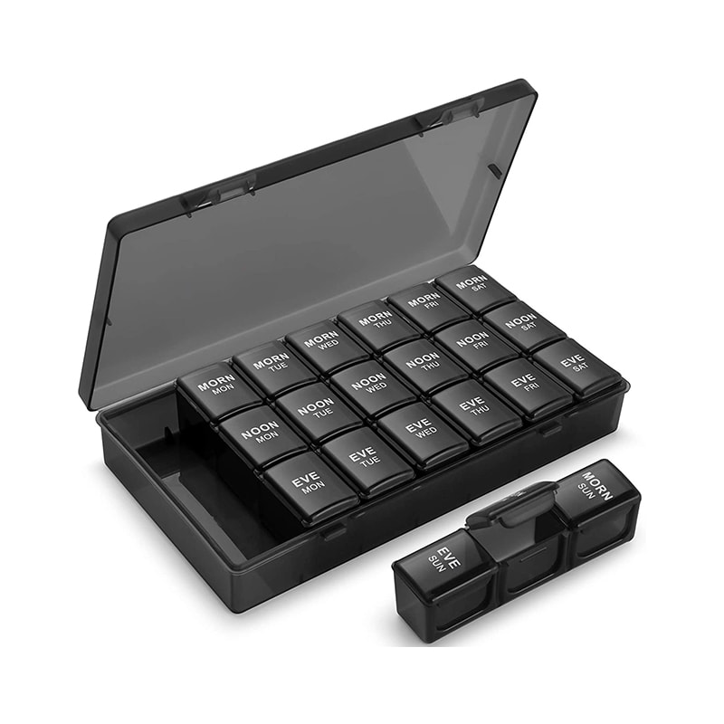 Ota vain päivän tarvikkeet taskuusi tai ota päivittäiset laatikot useiden päivien matkoille ja työmatkoille. Se on erittäin kompakti ja kätevä kuljettaa.