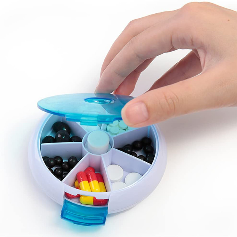 Avaa se Voit laittaa pillereitä suoraan sisään ja kiertämällä sitä valitaksesi, minkä paikan pilleriä haluat käyttää.