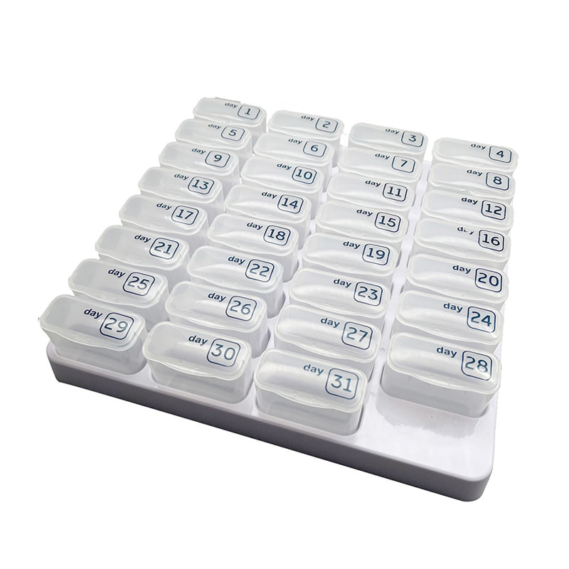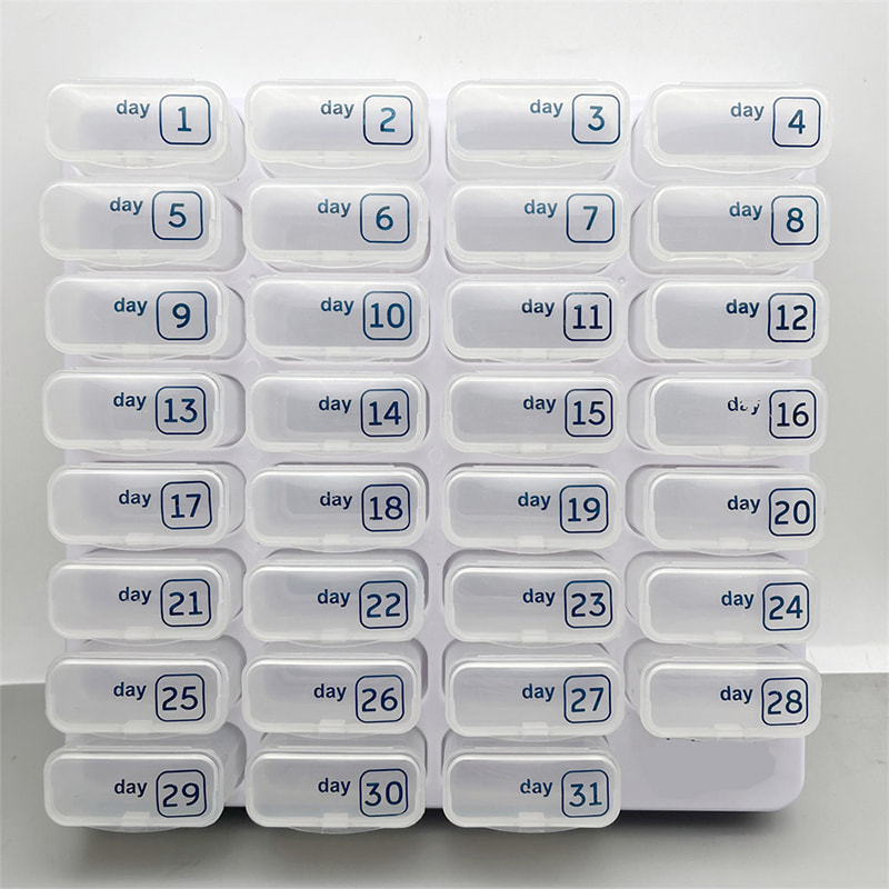 Palot on numeroitu vastaamaan kuukauden päivää käytön helpottamiseksi, jolloin on helppo muistaa, mikä päivä ja annostus on käytössä.