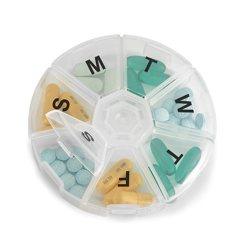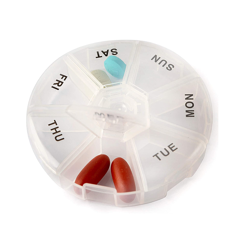 Tämä pillereiden järjestäjä on vain 3 tuumaa, tarpeeksi pieni mahtumaan taskuun! Valmistettu lujasta ja kestävästä läpikuultavasta muovista.