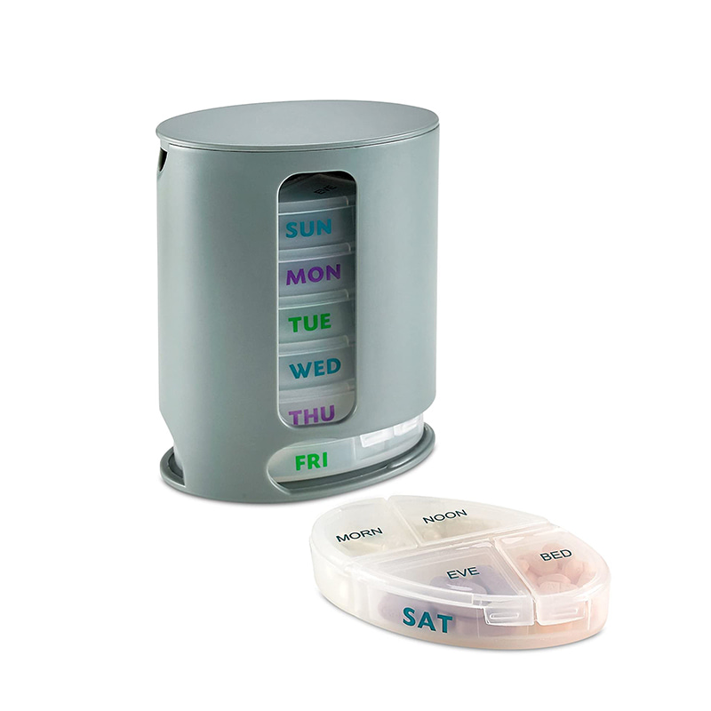 Sano hyvästit päivittäiselle annosteluohjelmalle. Tällä pillereiden järjestäjällä voit lajitella kerralla kaikki viikon tarvitsemasi pillerit.