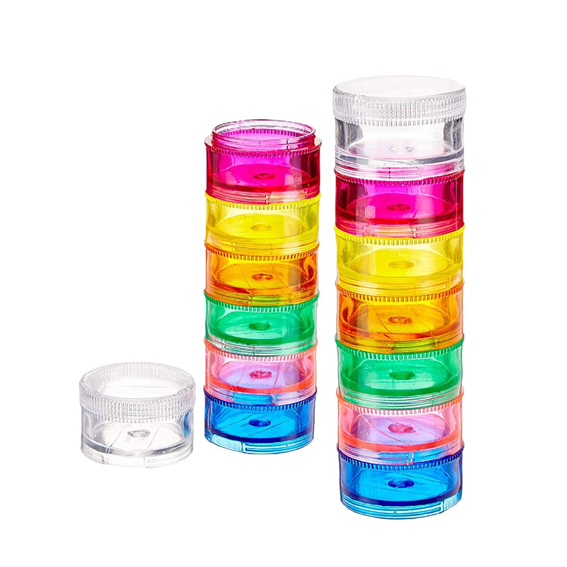 Pinottavissa olevien pilleripurkkien määrän joustavuus ja valittavissa olevat eri koot tekevät pinottavasta pillerisäiliöstä kätevän lisäyksen matkalaukullesi.