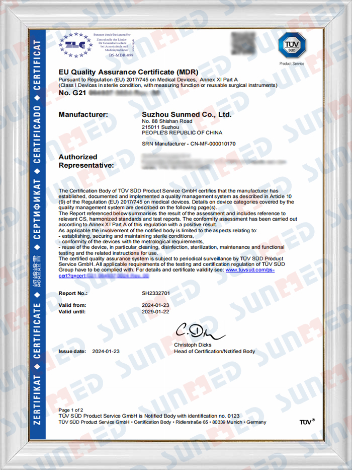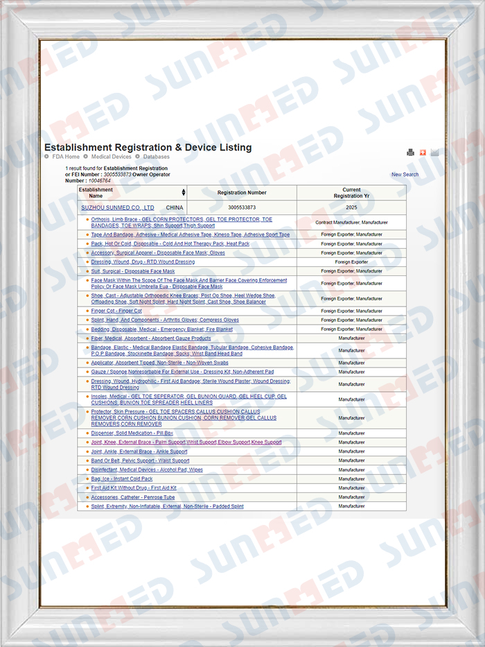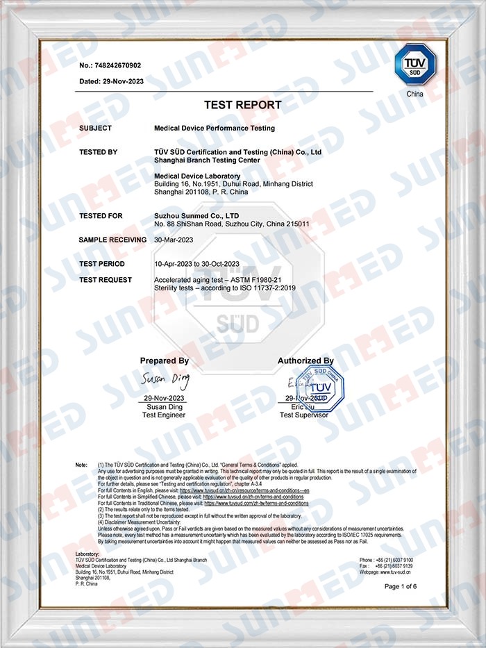 Sunmedilla on ammattitaitoinen laadunvalvontatiimi, johon kuuluu satoja työntekijöitä, jotka noudattavat tiukasti tarkastusmenettelyjä varmistaakseen, että täytämme ISO13485:2016-standardit. Suurin osa tuotteistamme on CE-sertifioituja, ja Suzhoun tehtaamme täyttävät FDA:n vaatimukset.